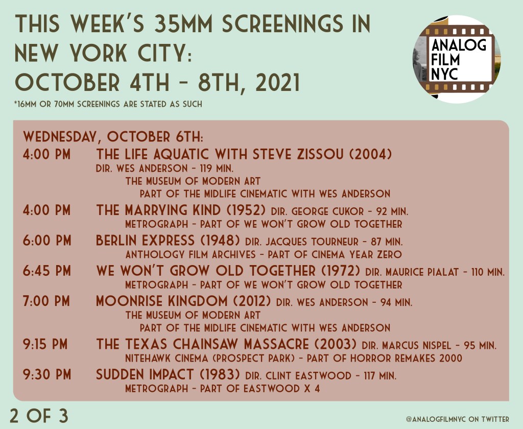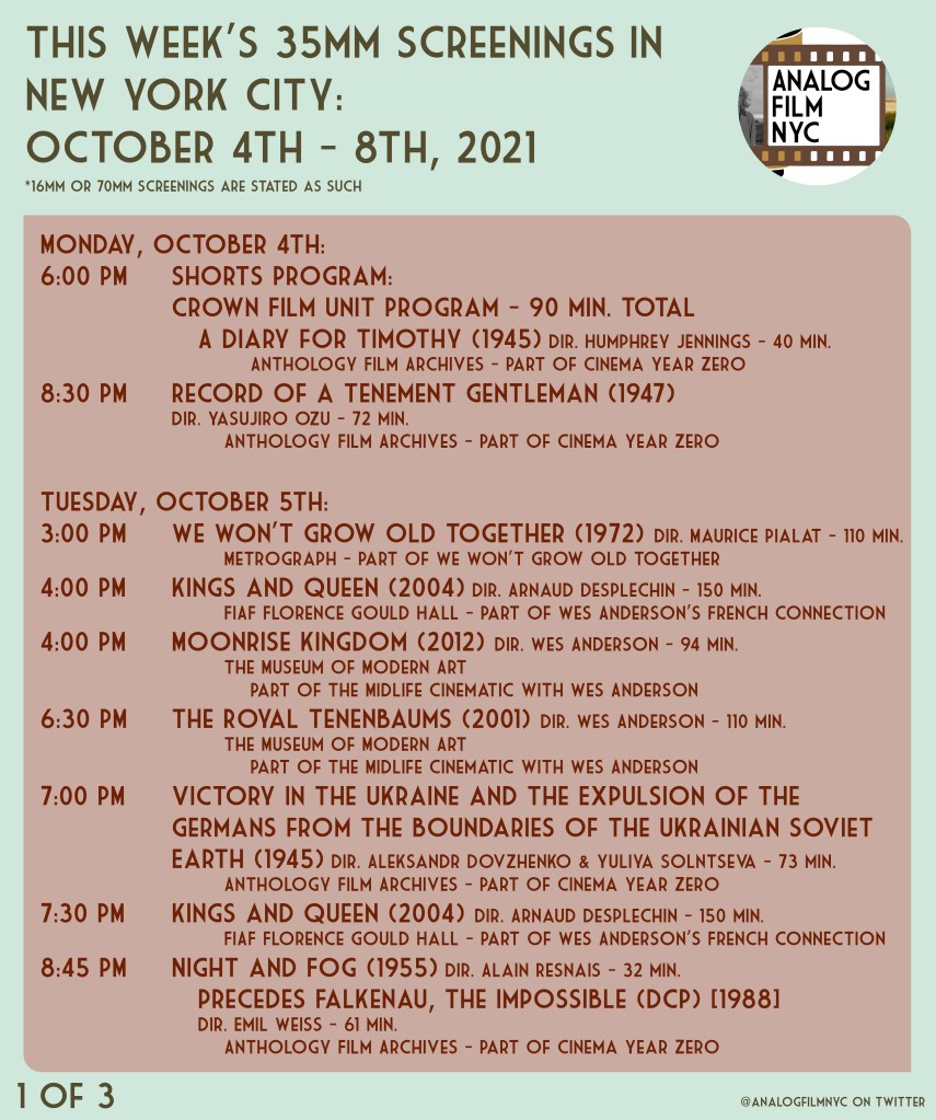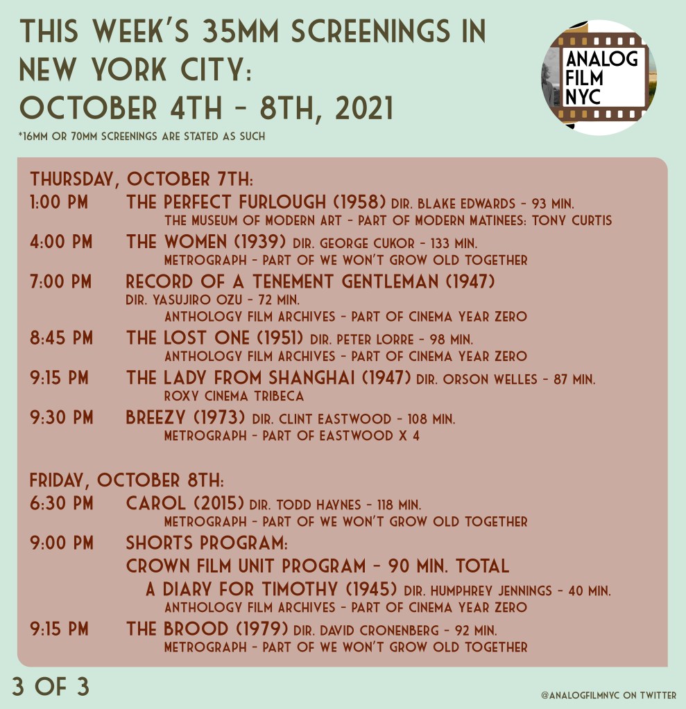 Upcoming celluloid film screenings in New York City