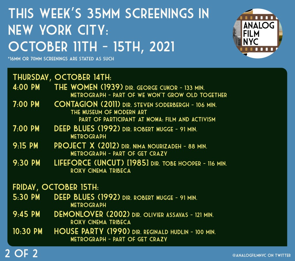 Upcoming celluloid film screenings in New York City