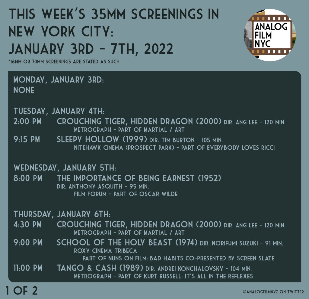 Sleepy Hollow (1999) at Nitehawk Cinema Prospect Park, Oscar Wilde at Film Forum, Screen Slate presents Nuns on Film: Bad Habits at the Roxy Cinema, The Power of the Dog (2021) at the Paris Theater & more.