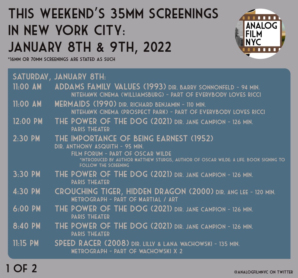 Addams Family Values (1993) & Mermaids (1990) at Nitehawk Cinema Williamsburg and Prospect Park respectively, The Power of the Dog (2021) at the Paris Theater, Oscar Wilde at Film Forum and more.