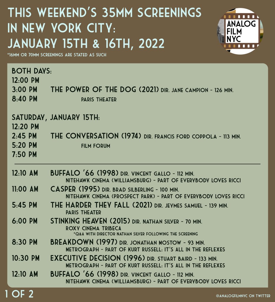 The Conversation (1974) at Film Forum, The Power of the Dog (2021) at the Paris Theater, Buffalo ’66 (1998) & Casper (1995) at Nitehawk Cinemas, Stinking Heaven (2015) & Black Narcissus (1947) at the Roxy Cinema & more.