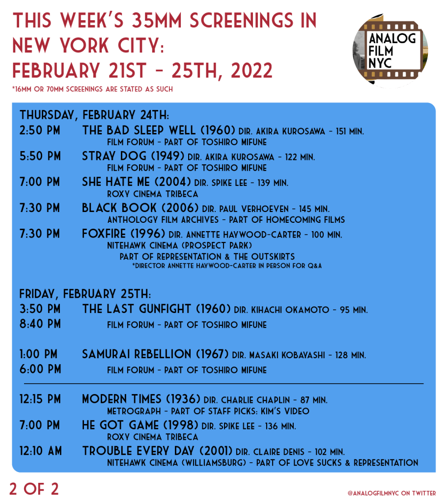 Toshirō Mifune at Film Forum, Homecoming Films at Anthology Film Archives, Jonas Mekas at Film at Lincoln Center, Trees Lounge (1996) at the Prospect Park Nitehawk Cinema, Spike Lee x 3 at the Roxy Cinema & more.