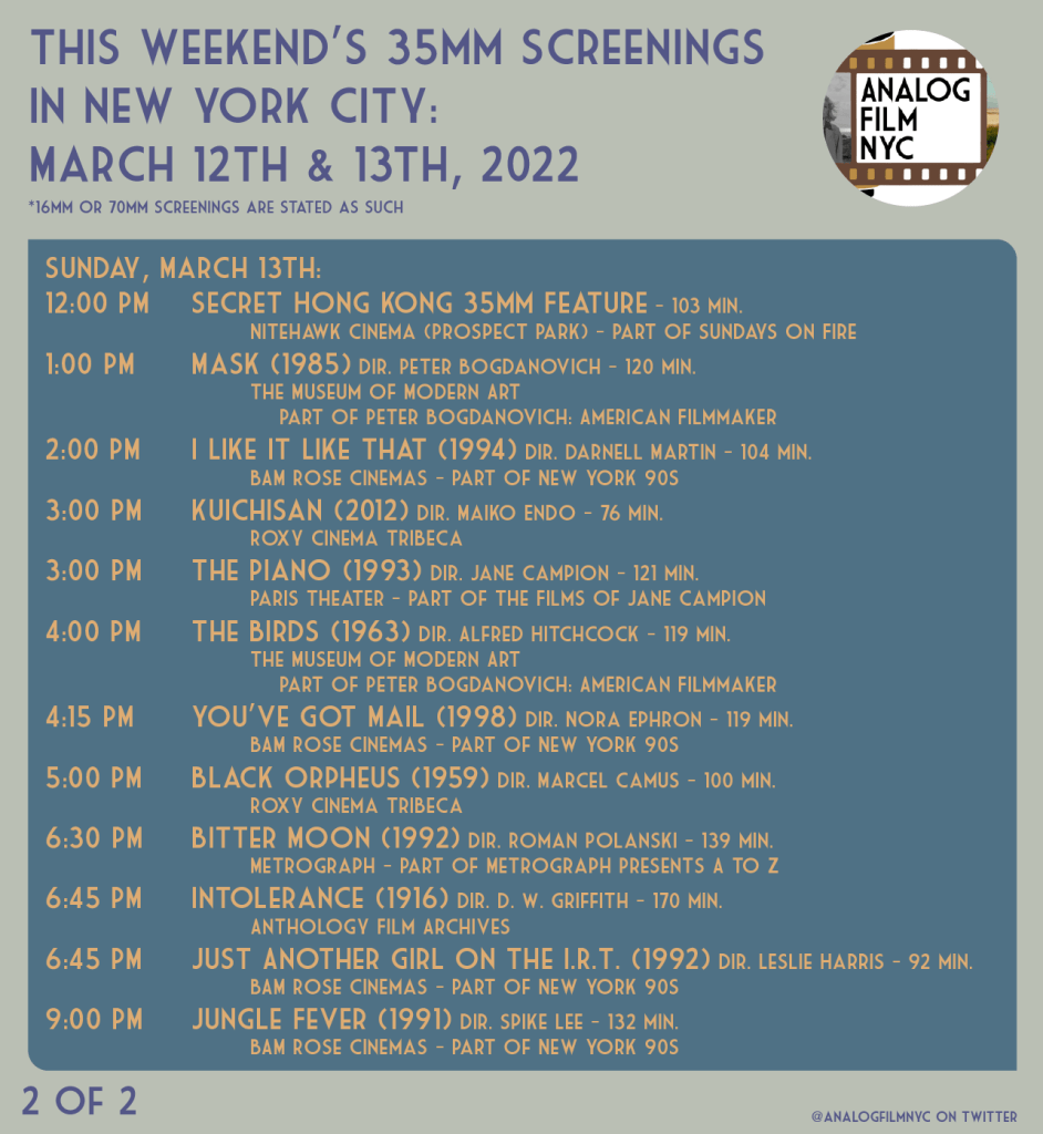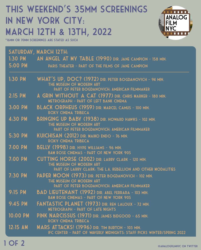 Upcoming celluloid film screenings in New York City