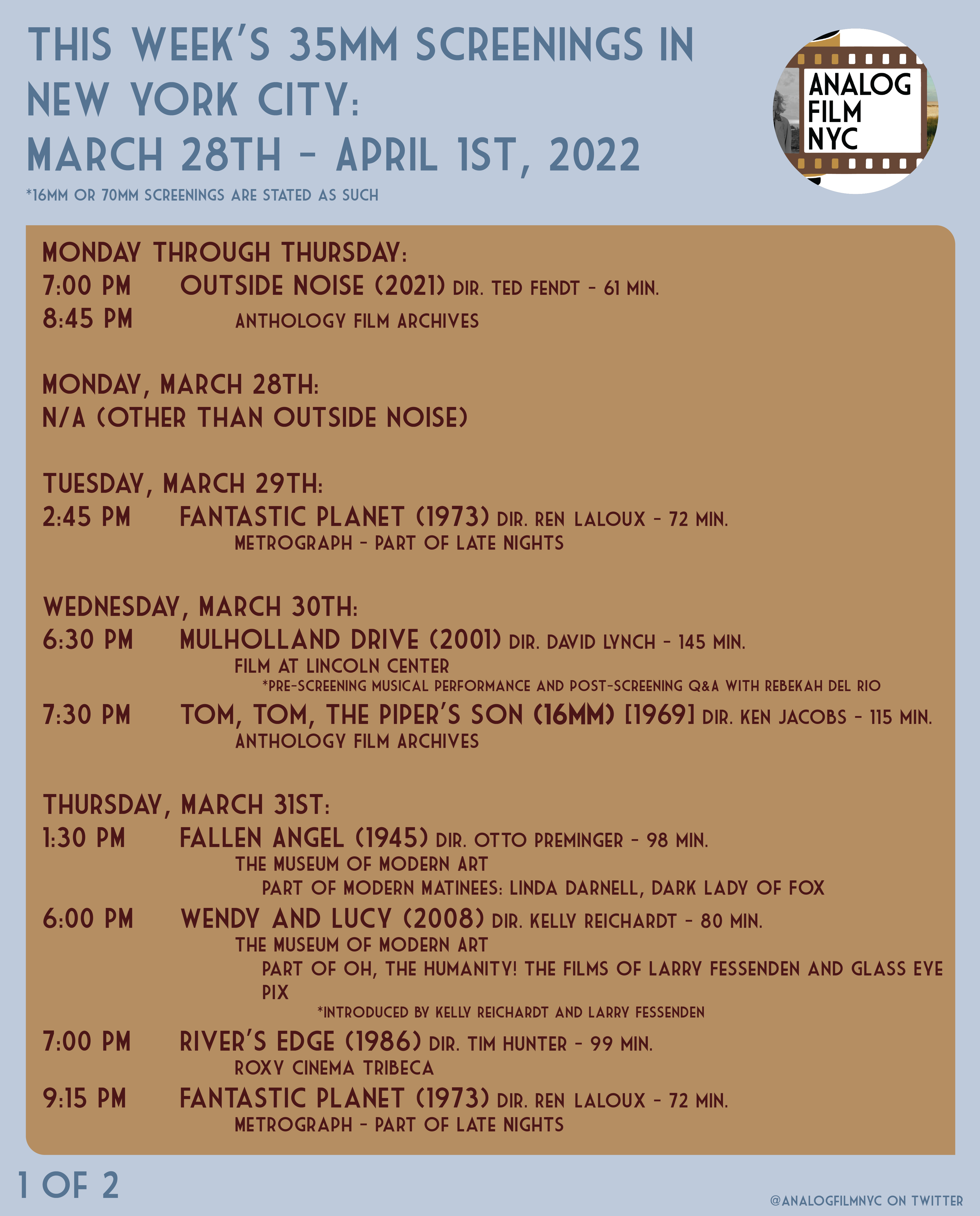 Upcoming celluloid film screenings in New York City