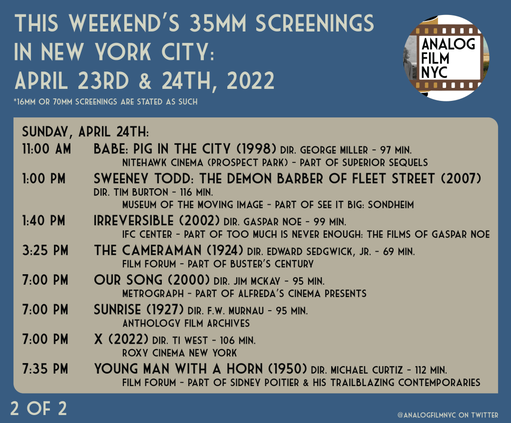 Babe: Pig in the City & Halloween III at Nitehawk Cinemas, Altered States & X at the Roxy Cinema, See It Big: Sondheim at the Museum of the Moving Image, Gaspar Noé at the IFC Center, Sidney Poitier at Film Forum & more.