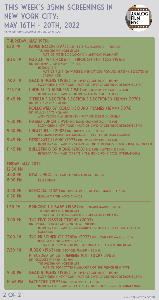 Upcoming celluloid film screenings in New York City