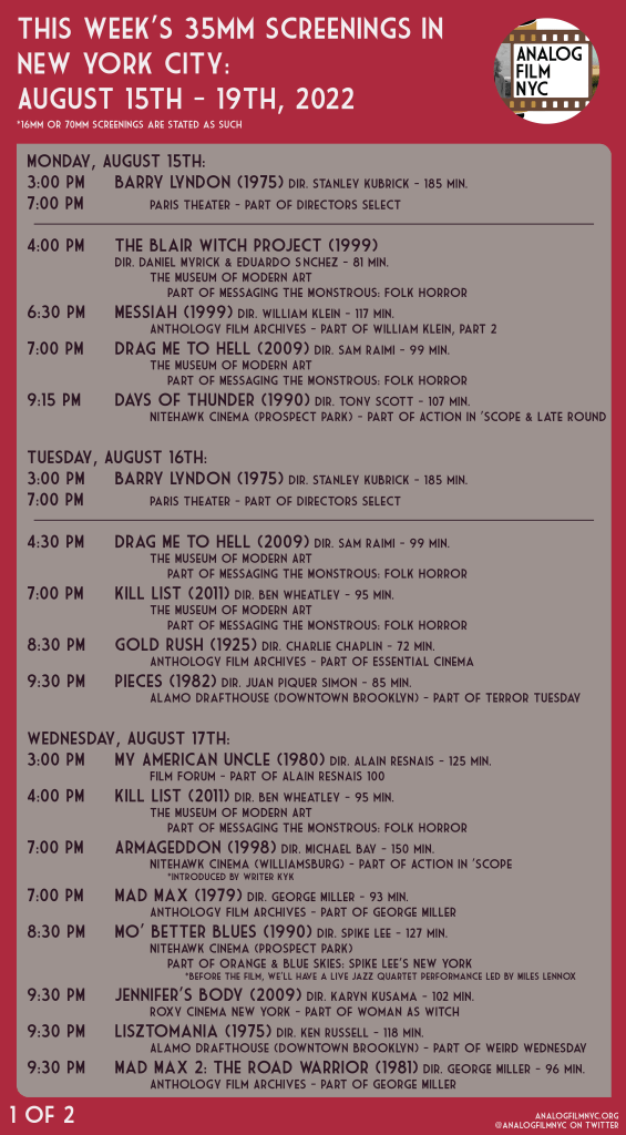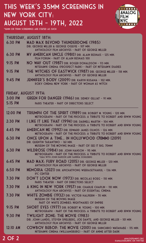 Upcoming celluloid film screenings in New York City