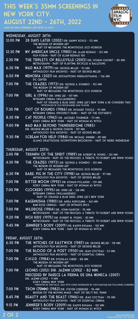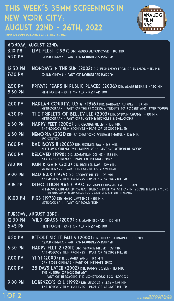 Boundless Bardem at Quad Cinema, George Miller at Anthology Film Archives, Memoria at the IFC Center, Intimate Epics at BAM Rose Cinemas, Woman As Witch & Jazmín López at the Roxy Cinema & more.