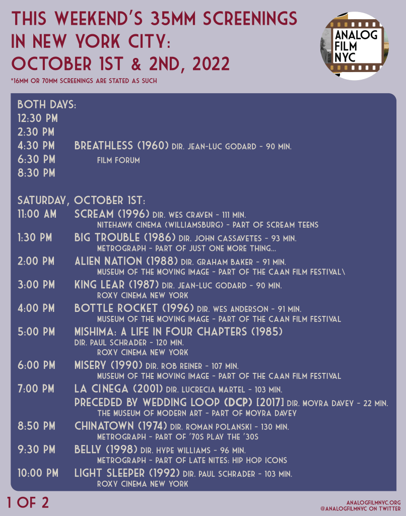 Breathless at Film Forum, Scream Teens at Nitehawk Cinemas, The Caan Film Festival at the Museum of the Moving Image, King Lear, Paul Schrader & 1 P.M. at the Roxy Cinema & more.