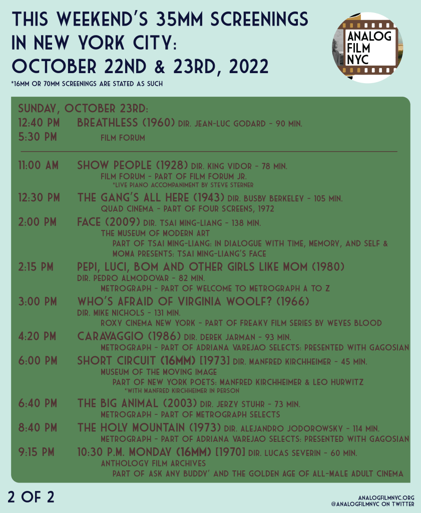 Upcoming celluloid film screenings in New York City