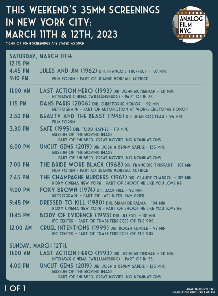 Upcoming celluloid film screenings in New York City