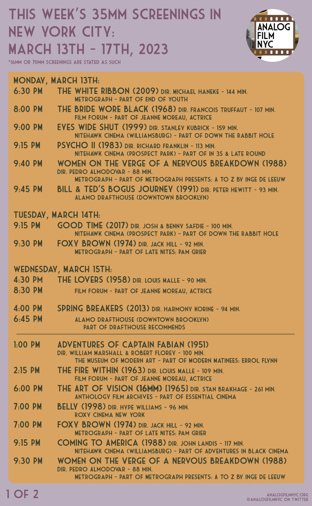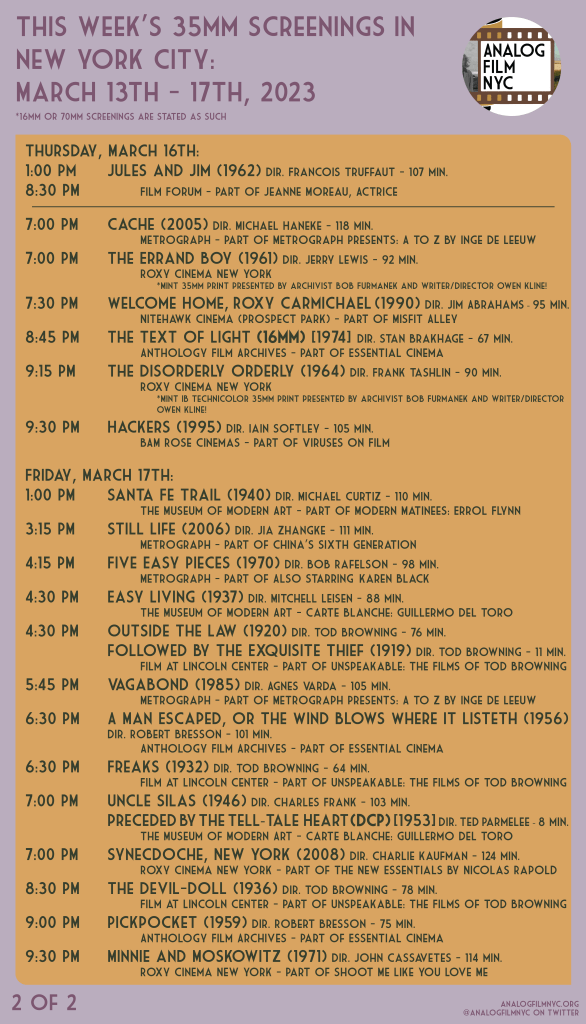 Upcoming celluloid film screenings in New York City