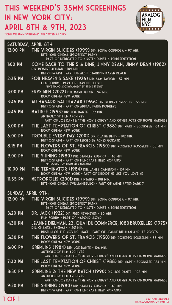Upcoming celluloid film screenings in New York City