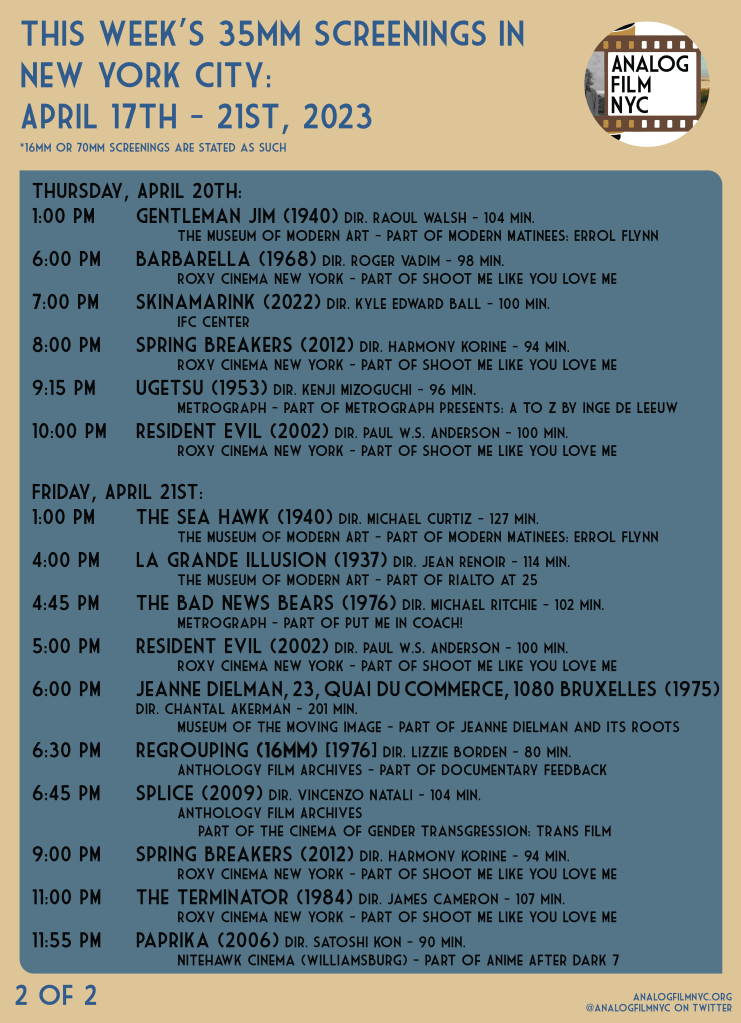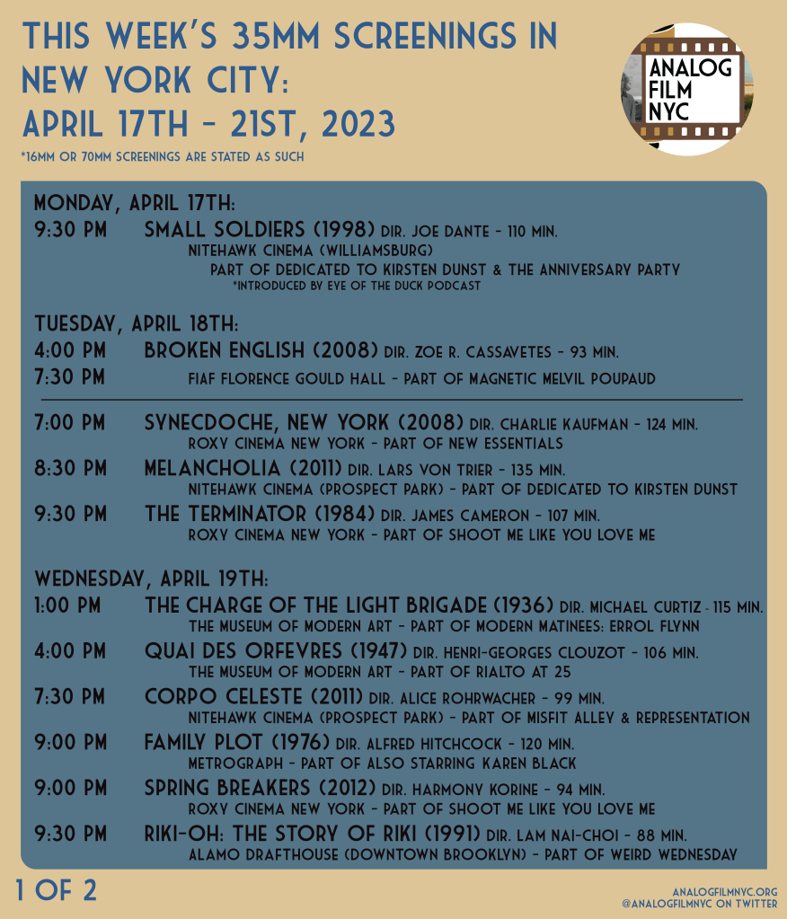 Small Soldiers, Melancholia & Paprika at Nitehawk Cinemas, Shoot Me Like You Love Me at the Roxy Cinema, Rialto at 25 at The Museum of Modern Art, Jeanne Dielman at the Museum of the Moving Image & more.