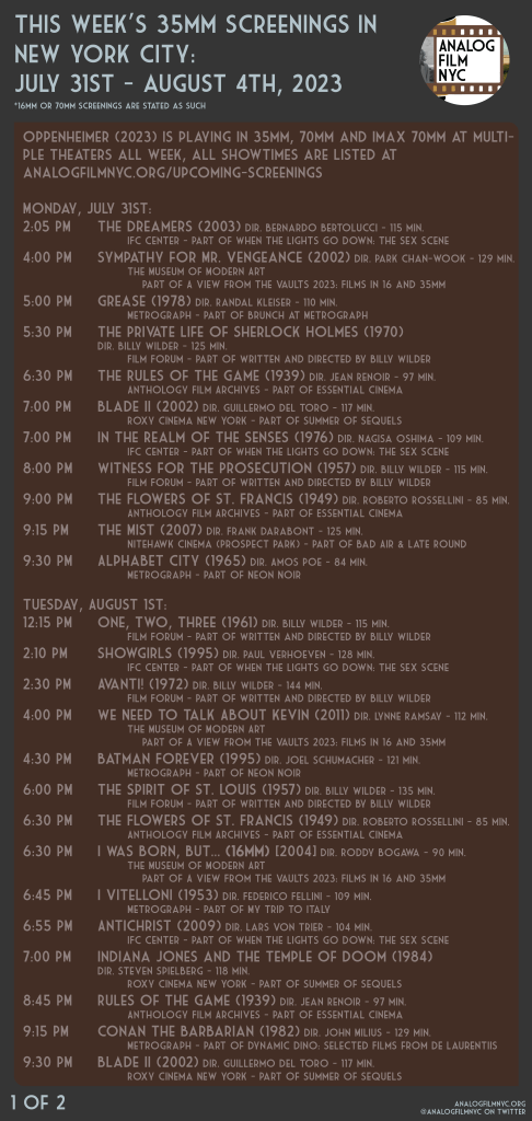 Summer of Sequels at the Roxy Cinema, The Sex Scene at the IFC Center, Shopping Worlds at Anthology Film Archives, Second Features at BAM Rose Cinemas & more.