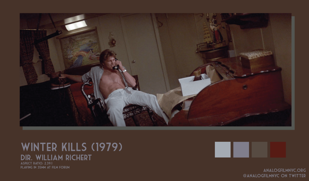 Winter Kills at Film Forum, Love on the Run at Nitehawk Cinemas, See It Big: 70mm! at the Museum of the Moving Image, Pee-wee’s Big Adventure, Wankstaz & Madonna at the Roxy CinemaNYC & more.