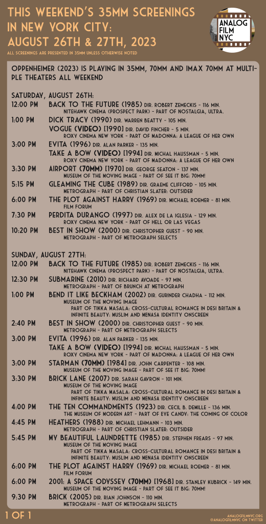 Back to the Future at Nitehawk Cinemas, Madonna at the Roxy Cinema, 70mm at the Museum of the Moving Image, The Plot Against Harry at Film Forum & more.