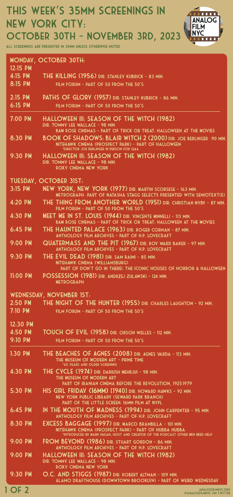 50 From the 50’s at Film Forum, Halloween at BAM Rose Cinemas & Nitehawk Cinemas, H.P. Lovecraft at Anthology Film Archives, Divinity at the Roxy Cinema & more.