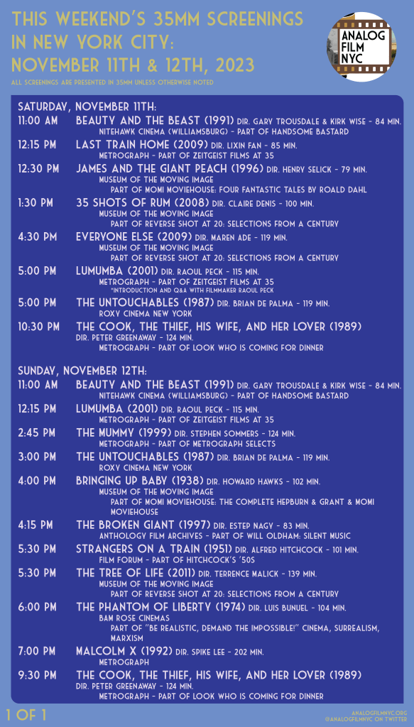 Handsome Bastard at Nitehawk Cinema, Roald Dahl & Reverse Shot at the Museum of the Moving Image, The Untouchables at the Roxy Cinema, Surrealism & Marxism at BAM Rose Cinemas & more.