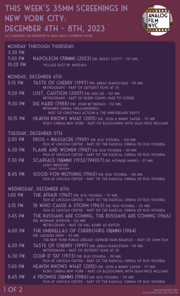 Upcoming celluloid film screenings in New York City