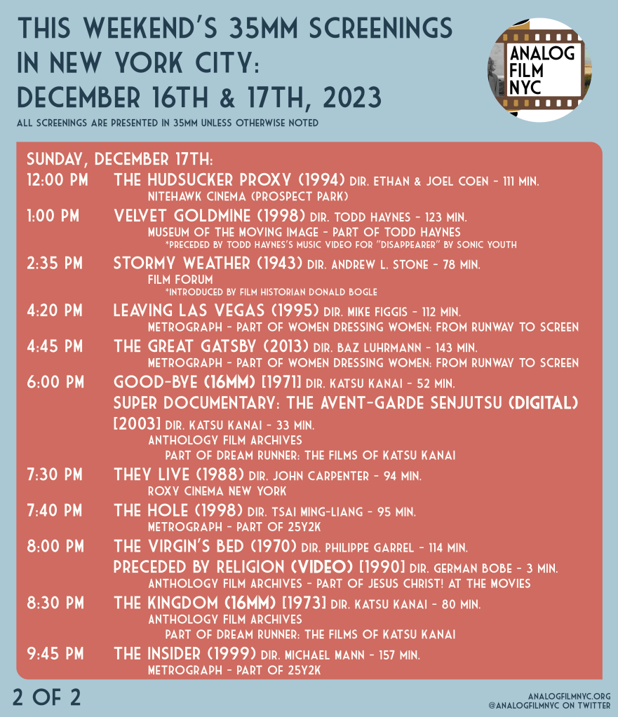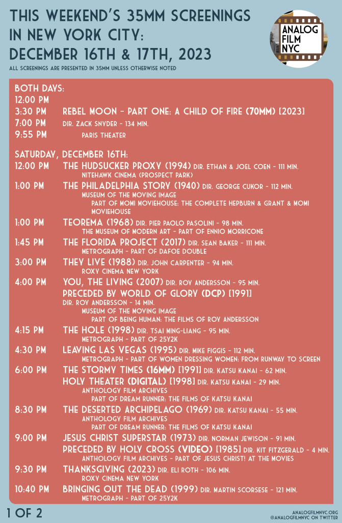 Upcoming celluloid film screenings in New York City