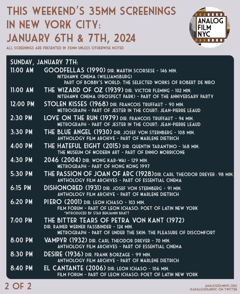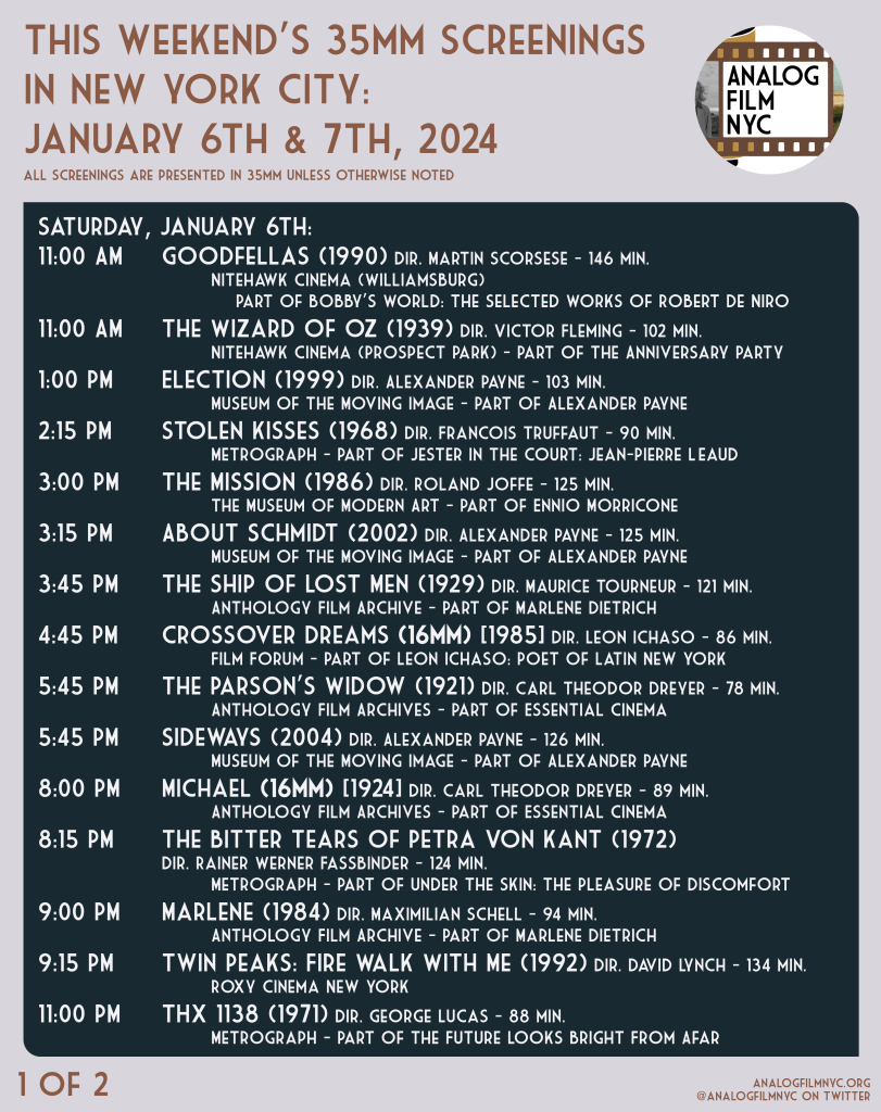 Robert De Niro at Nitehawk Cinemas, Alexander Payne at the Museum of the Moving Image, Ennio Morricone at The Museum of Modern Art, Marlene Dietrich & Theodor Dreyer at Anthology Film Archives & more.