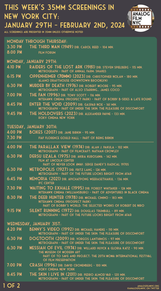 Robert De Niro at Nitehawk Cinemas, Jane Birkin at FIAF NY, Serge Daney’s Radical 1970s at Film at Lincoln Center, To Save and Project at The Museum of Modern Art & more.