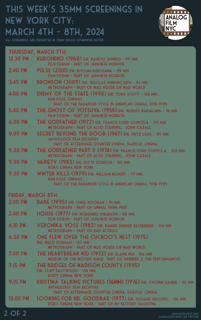 Upcoming celluloid film screenings in New York City
