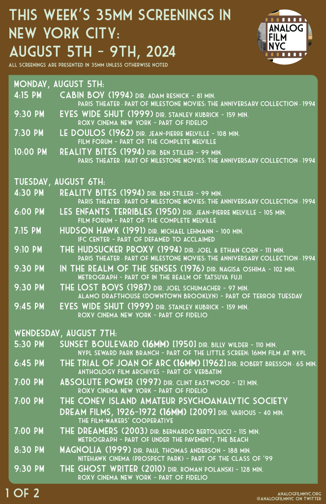 The Complete Melville continues at Film Forum, Defamed to Acclaimed at the IFC Center, Sunset Boulevard in 16mm at The New York Public Library, Verbatim at Anthology Film Archives & more.