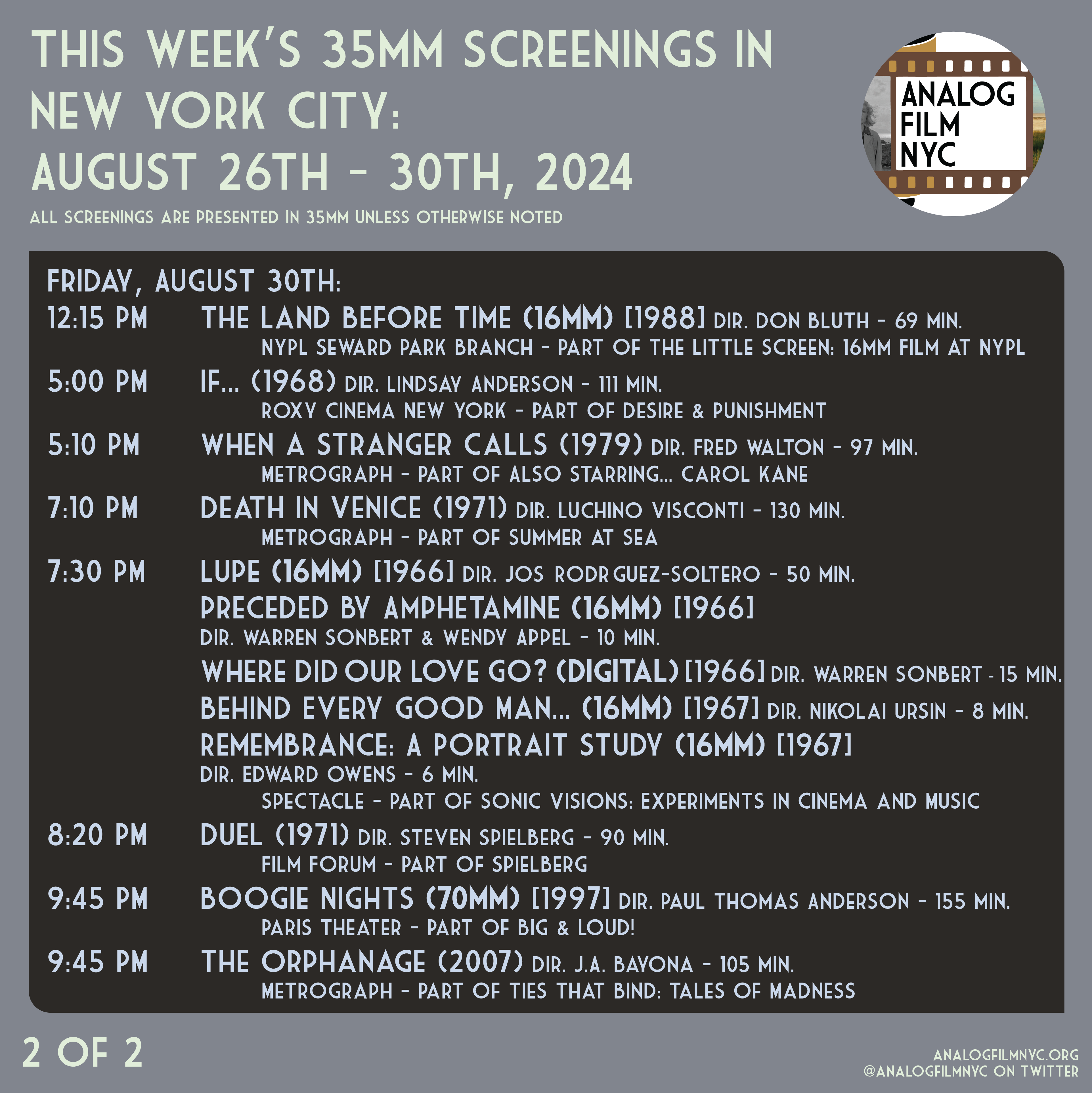 Desire & Punishment at the Roxy CinemaNYC, The Class of ’99 at Nitehawk Cinemas, Paramount in the 1970s at The Museum of Modern Art, The Land Before Time in 16mm at the New York Public Library & more.