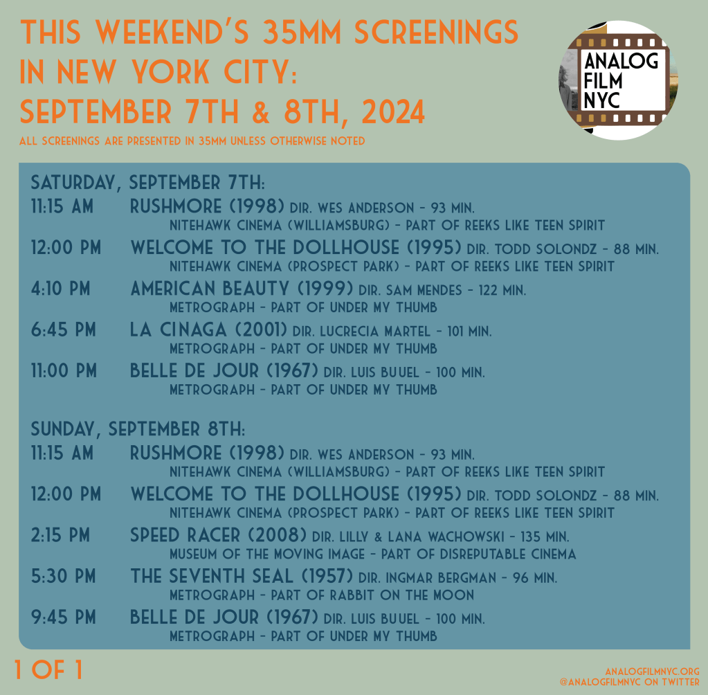 Upcoming celluloid film screenings in New York City
