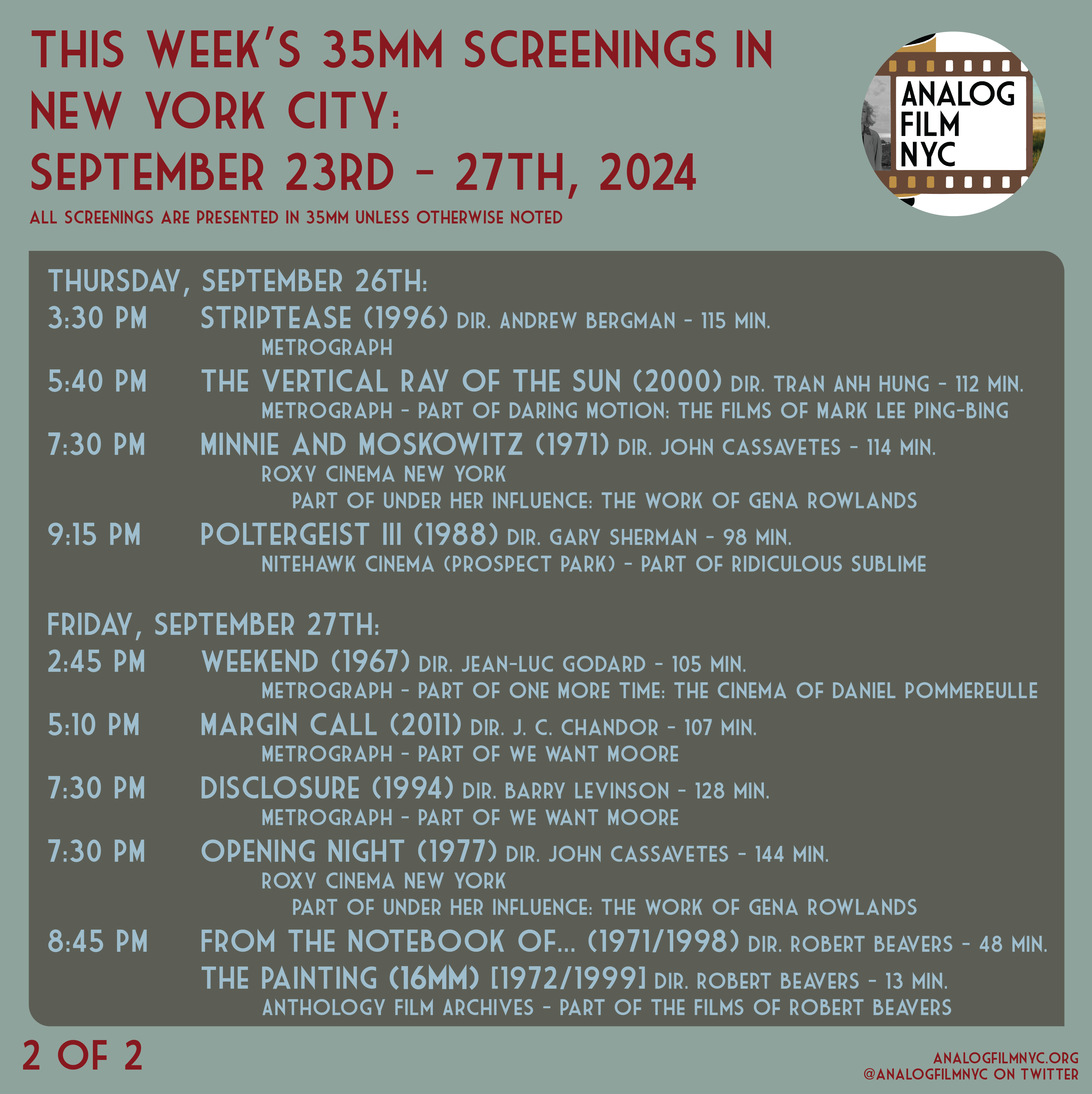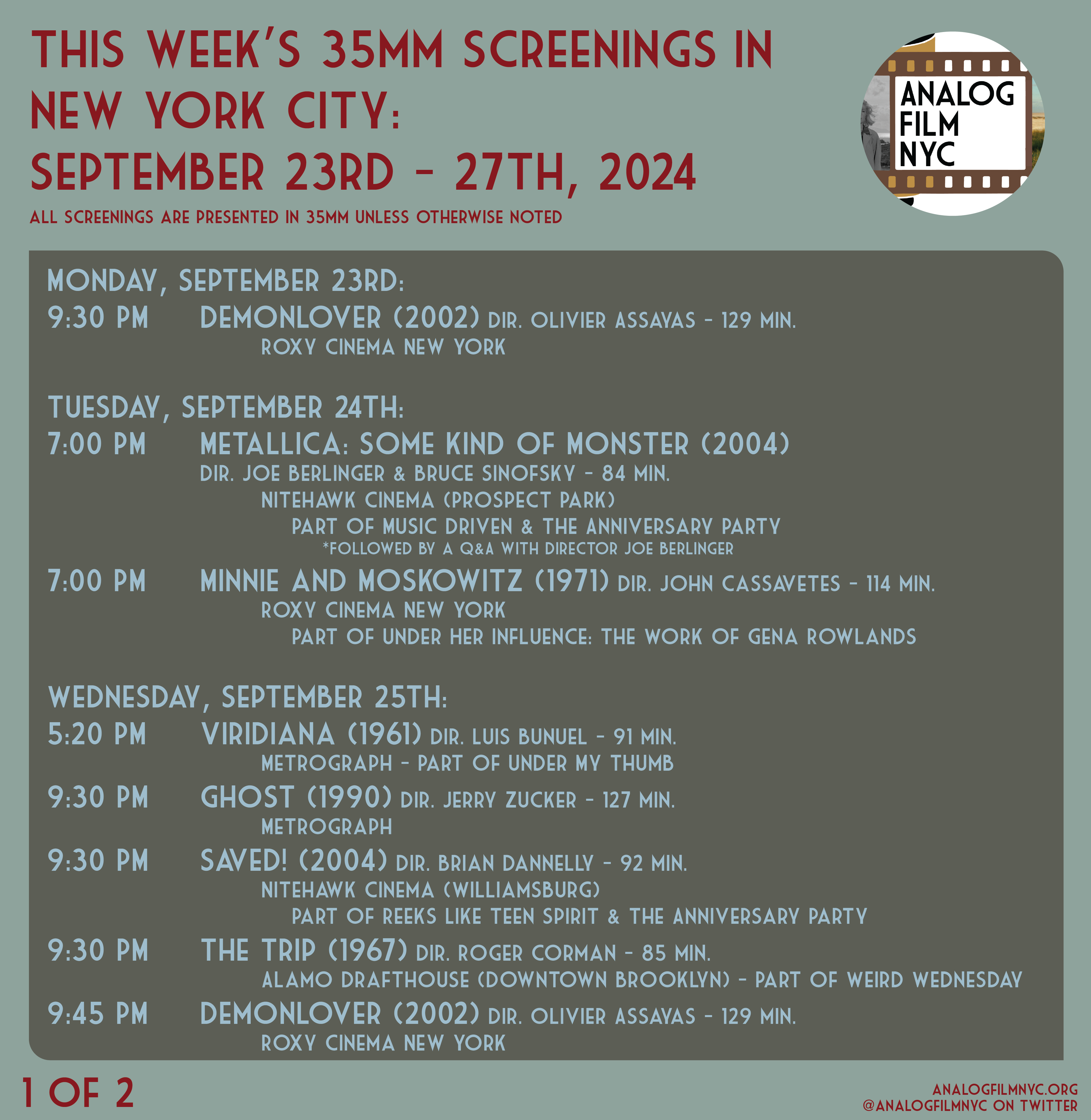 Upcoming celluloid film screenings in New York City