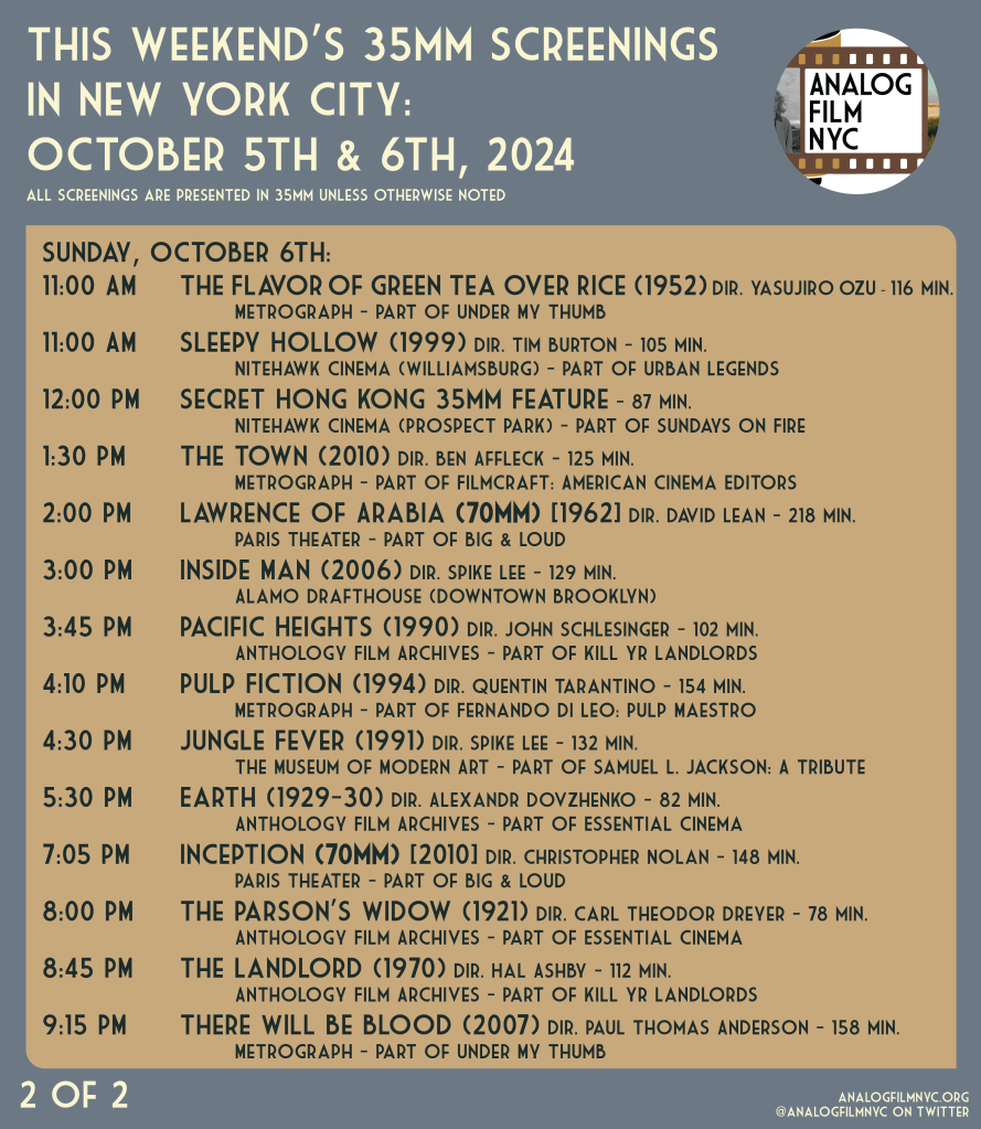 Upcoming celluloid film screenings in New York City