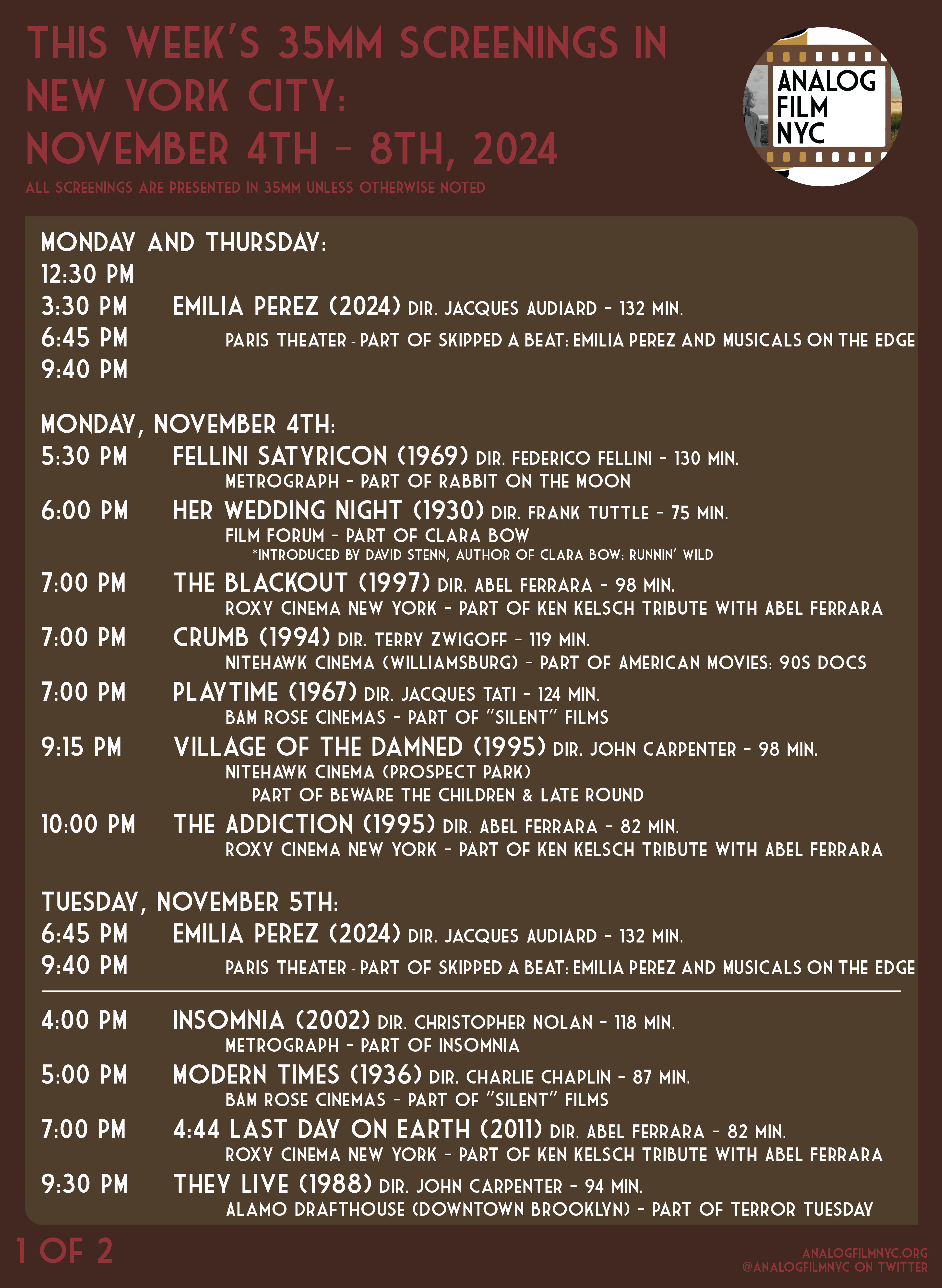 Upcoming celluloid film screenings in New York City