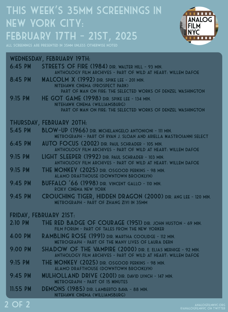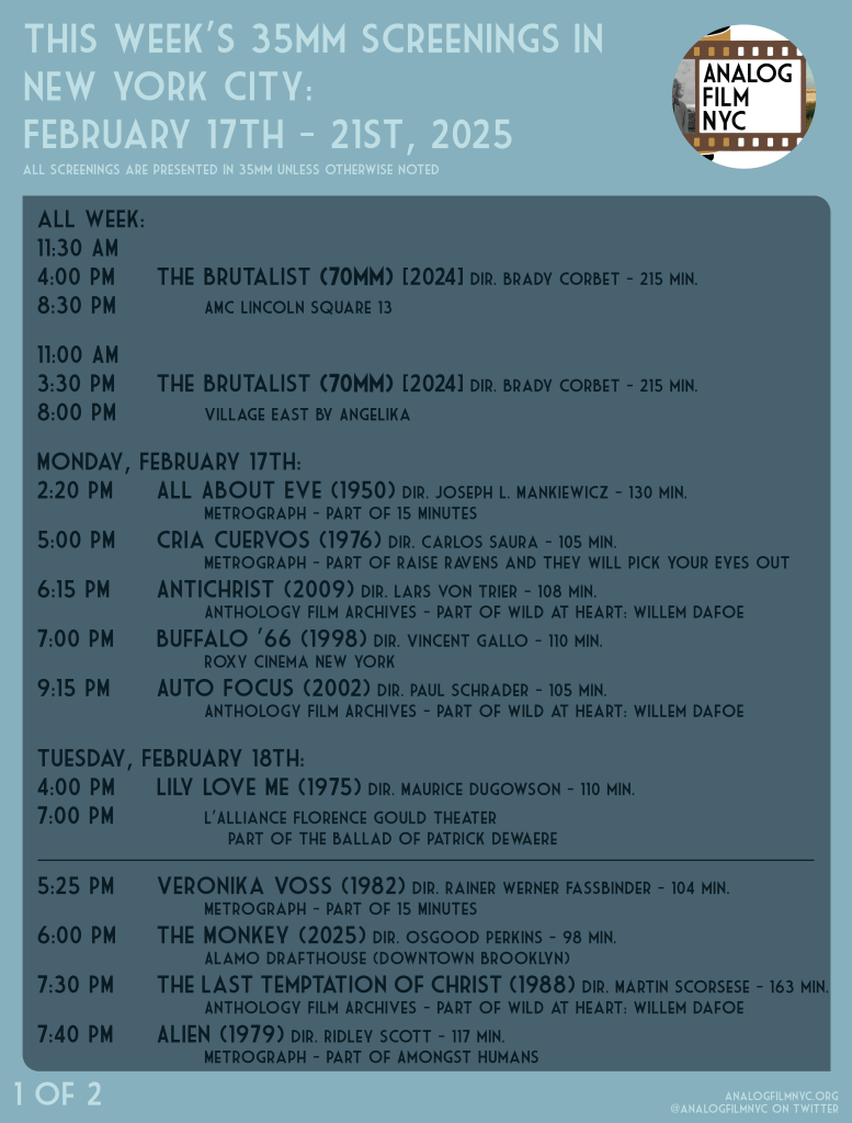 Upcoming celluloid film screenings in New York City