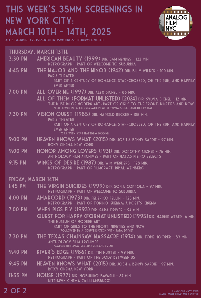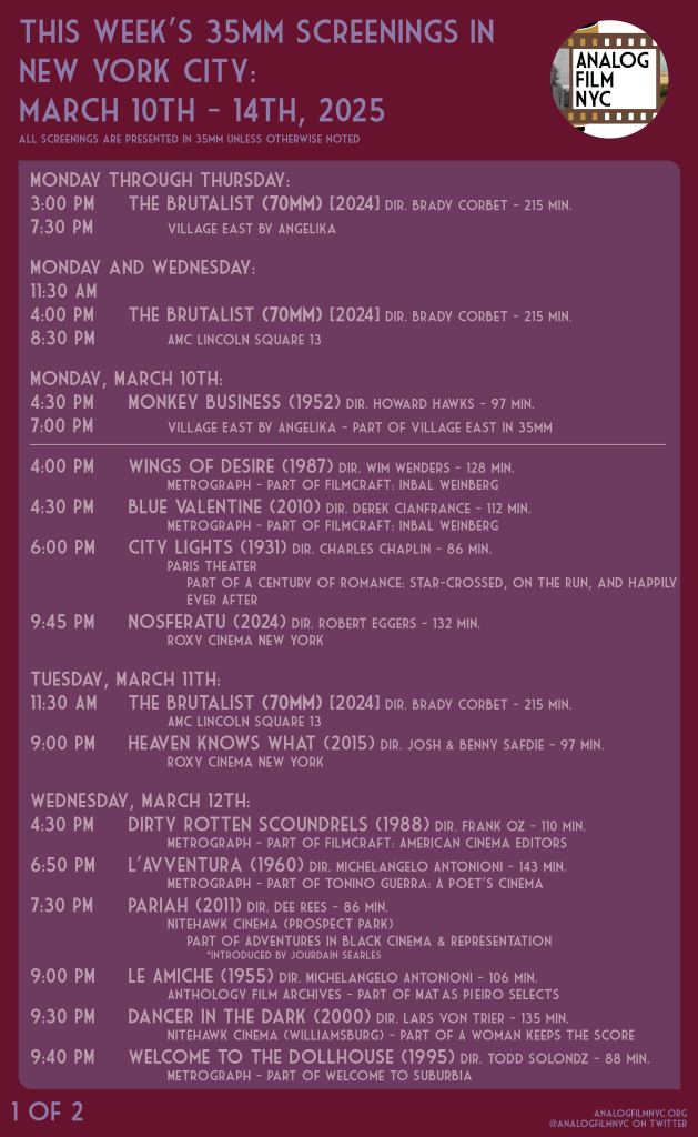 Upcoming celluloid film screenings in New York City