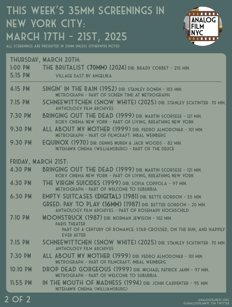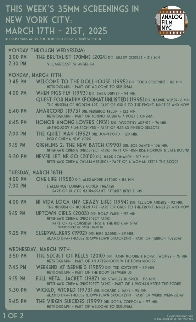 Girls to the Front at The Museum of Modern Art, The Quiet Man at the Roxy Cinema New York, High Rise Horror & A Woman Keeps the Score at Nitehawk Cinemas, Rosemary Hochschild & Snow White at Anthology Film Archives & more.