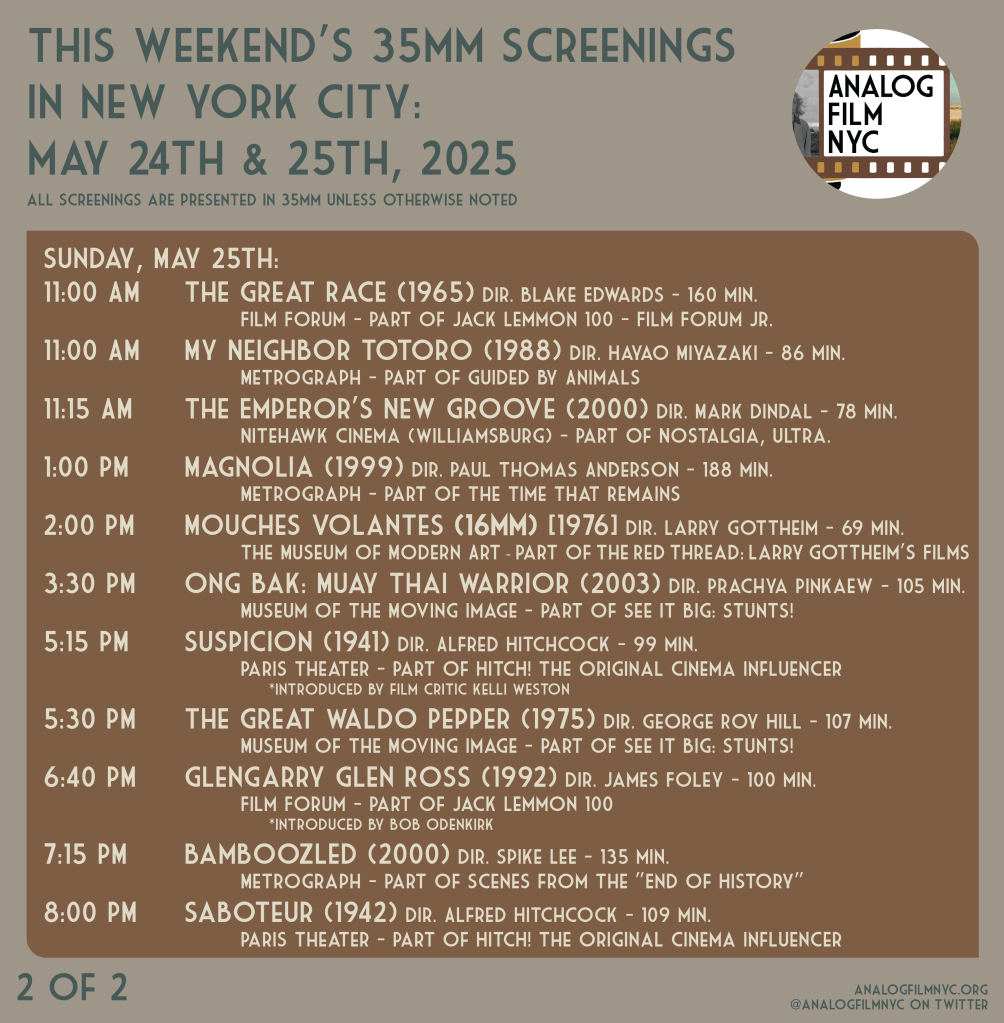 Nostalgia, Ultra. at Nitehawk Cinemas, See It Big: Stunts! at Museum of the Moving Image, Larry Gottheim at The Museum of Modern Art, Prime Cut in 16mm at the Roxy Cinema, Jack Lemmon 100 at Film Forum & more.