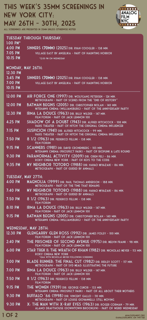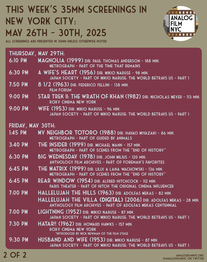 Upcoming celluloid film screenings in New York City