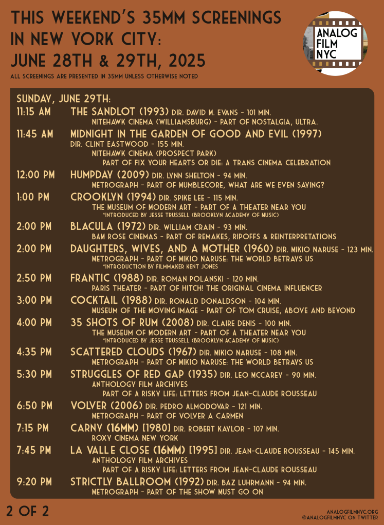 Jean-Claude Rousseau at Anthology Film Archives, A Theater Near You at The Museum of Modern Art, Remakes and Ripoffs at BAM Rose Cinemas, Carny in 16mm at the Roxy Cinema & more.