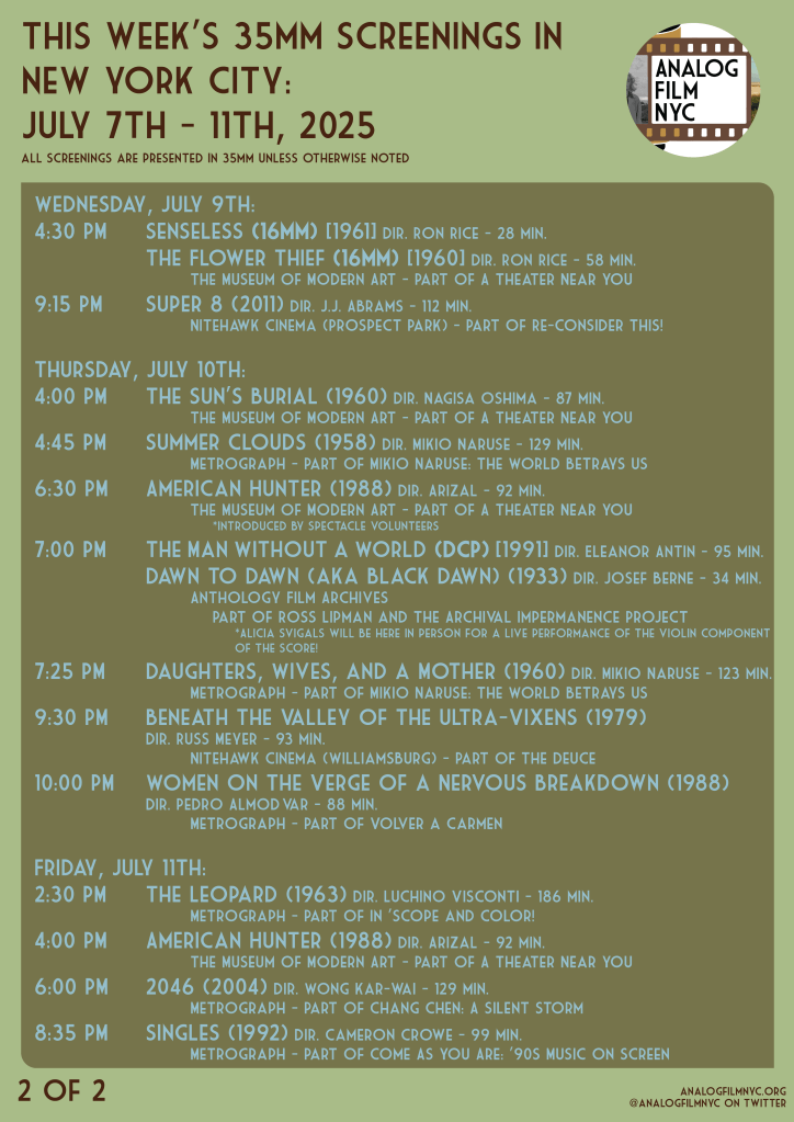 Upcoming celluloid film screenings in New York City