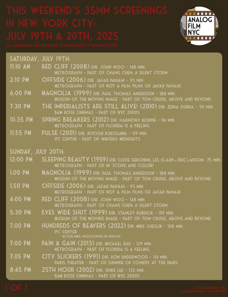 Tom Cruise at the Museum of the Moving Image, Pulse & Hundreds of Beavers at the IFC Center, NYC 2000s at BAM Rose Cinemas & more.