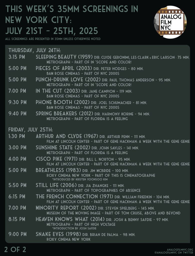 Hundreds of Beavers at the IFC Center, NYC 2000s at BAM Rose Cinemas, Late Round at Nitehawk Cinemas, Breathless (1983) & Snake Eyes at the Roxy Cinema, Gene Hackman at Film at Lincoln Center & more.