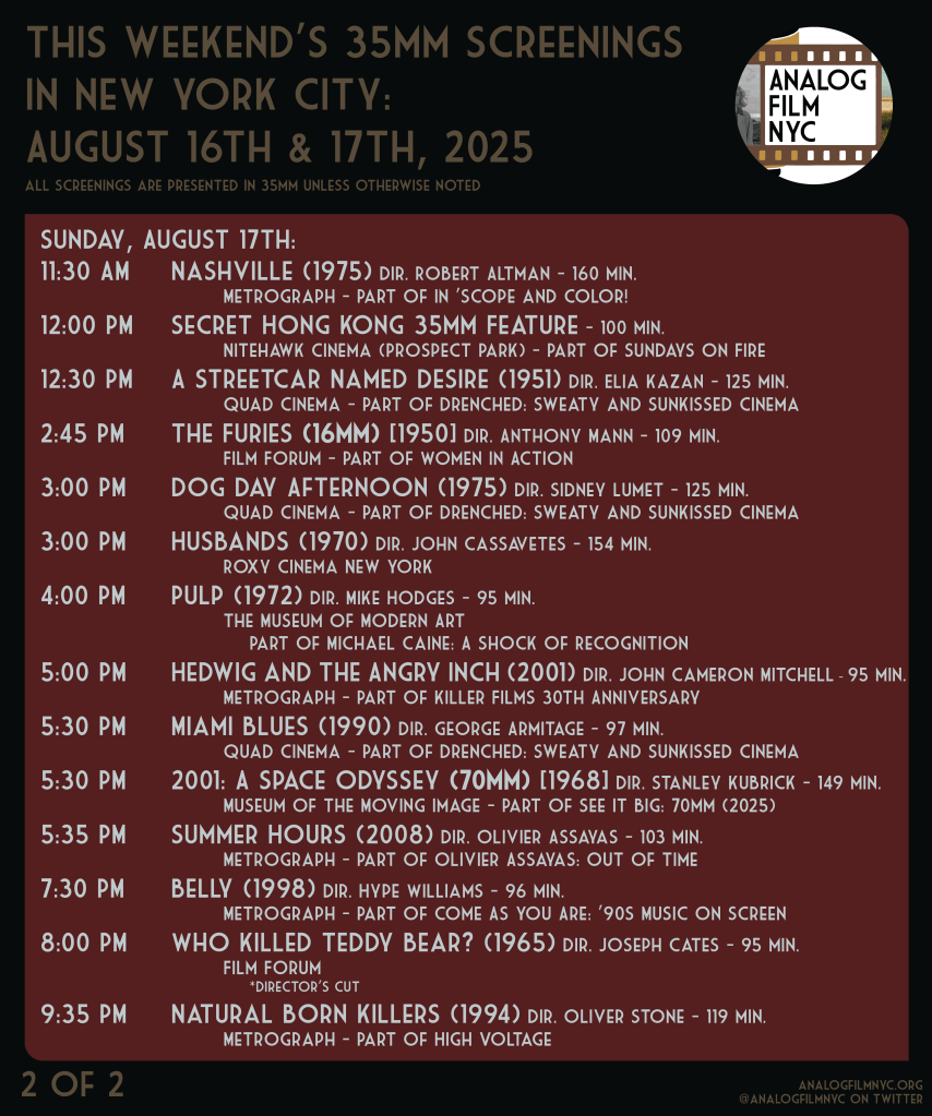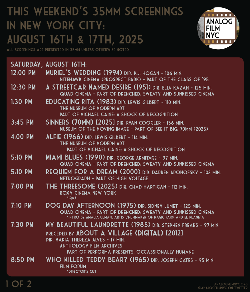 Upcoming celluloid film screenings in New York City