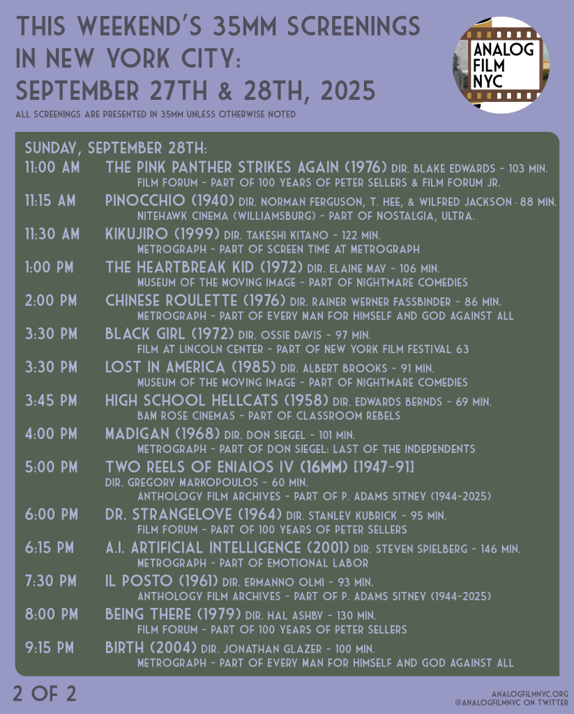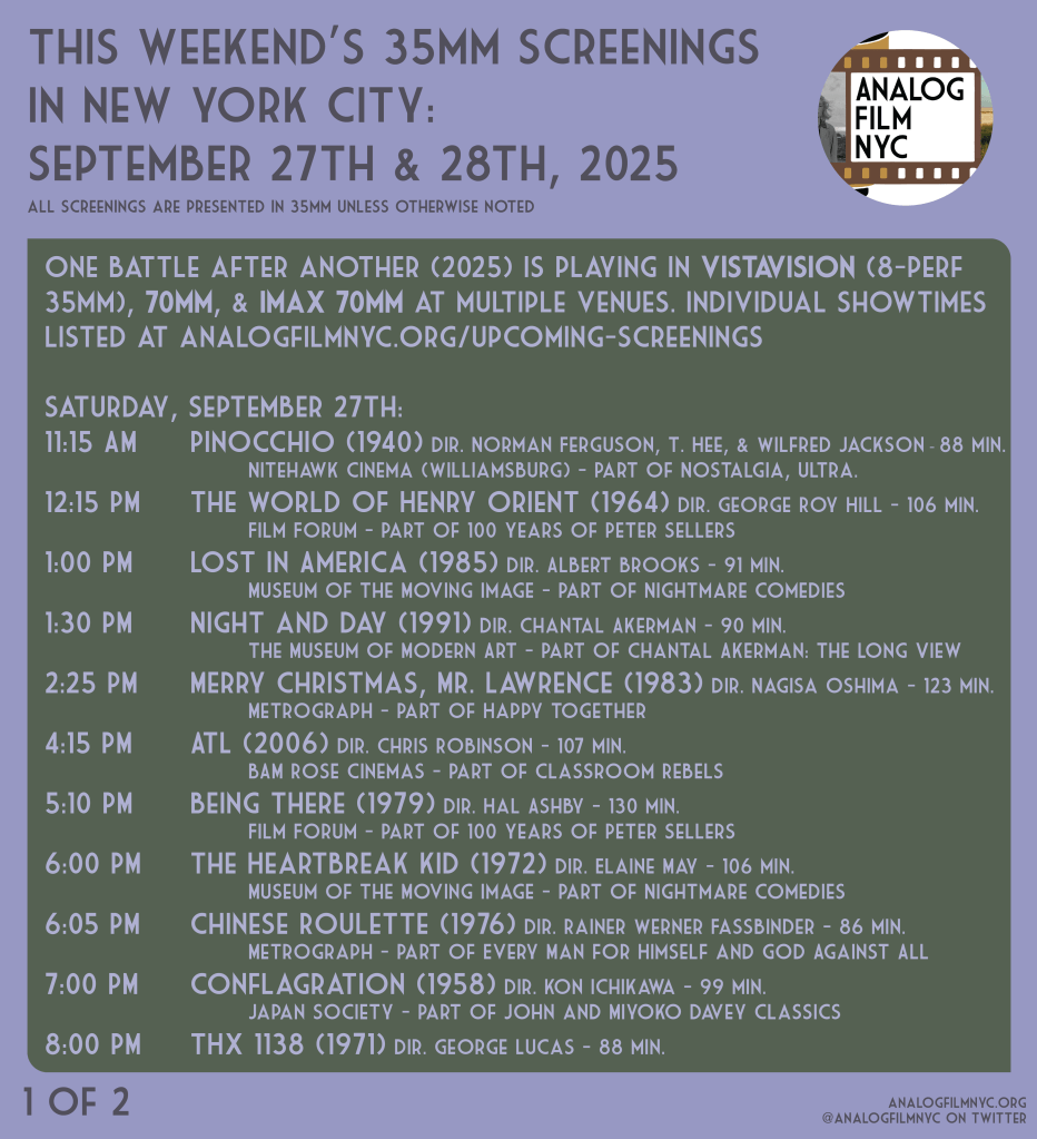 Upcoming celluloid film screenings in New York City