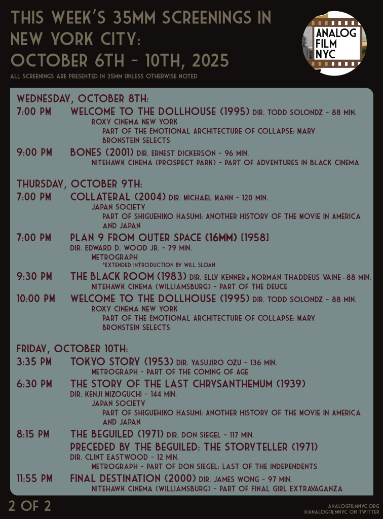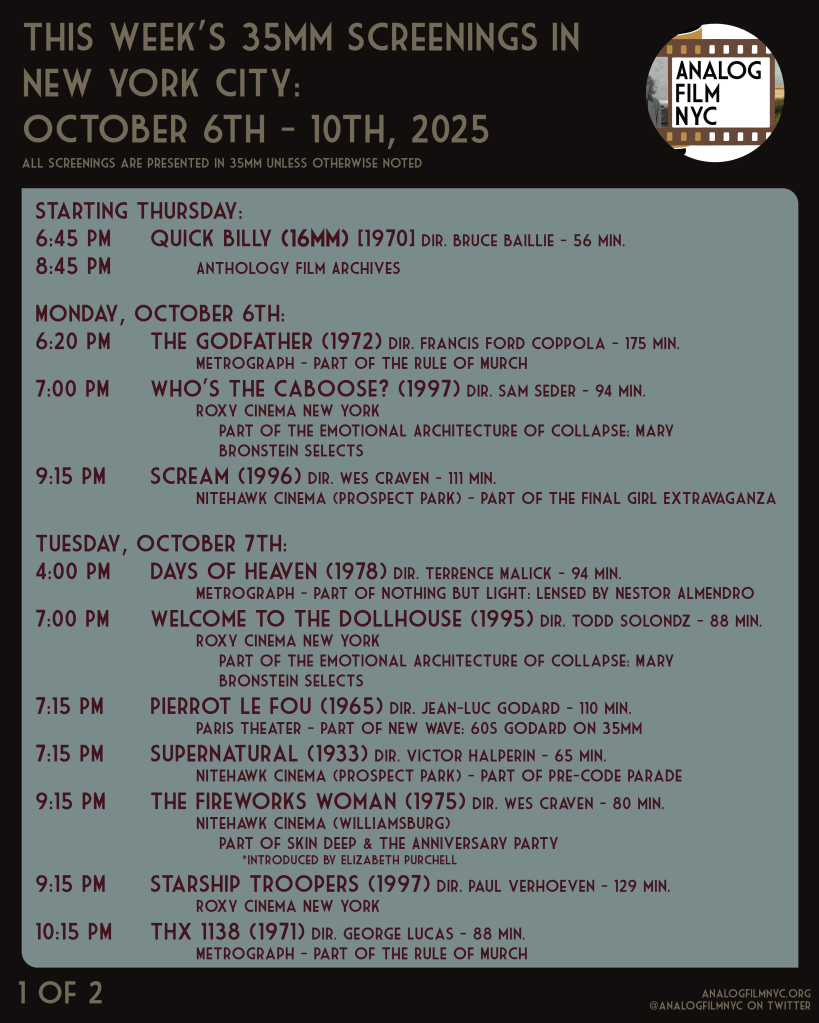 Upcoming celluloid film screenings in New York City
