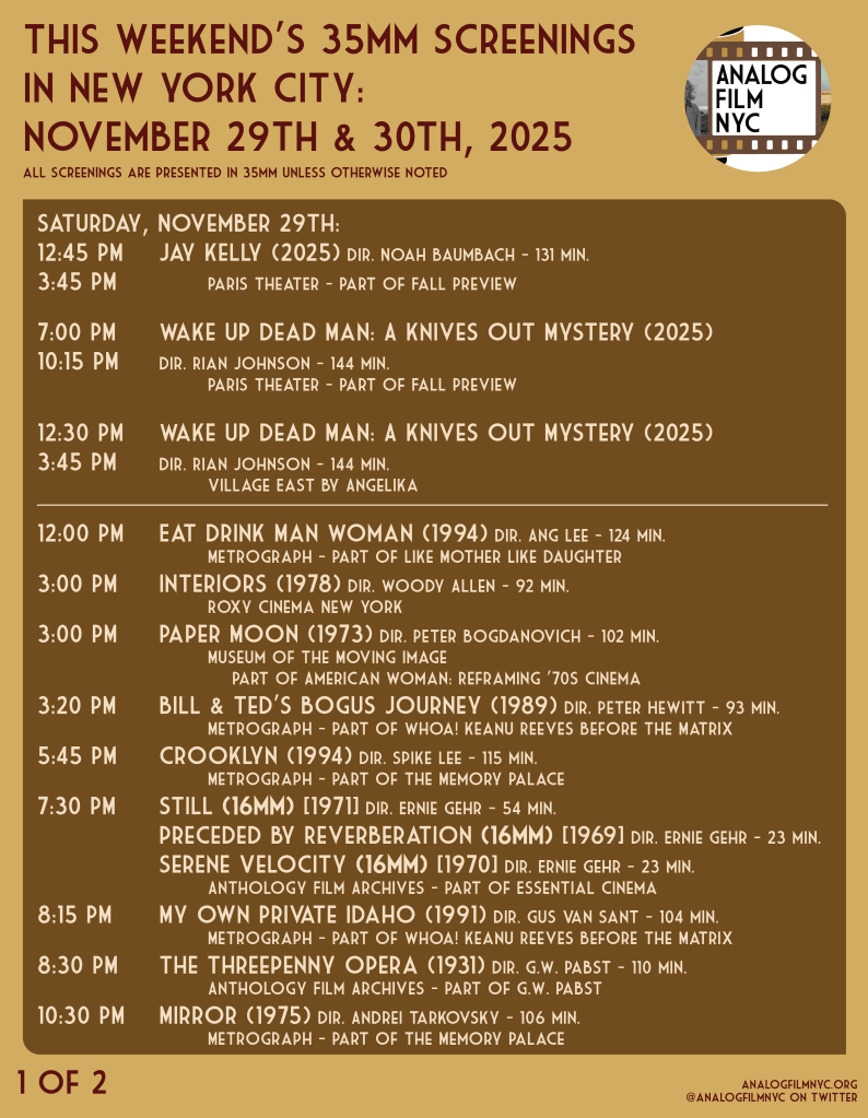Ernie Gehr at Anthology Film Archives, American Woman at the Museum of the Moving Image, Peter Hujar’s Day at Film Forum, Wake Up Dead Man at Village East by Angelika, & more.