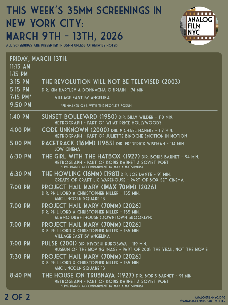 Upcoming celluloid film screenings in New York City