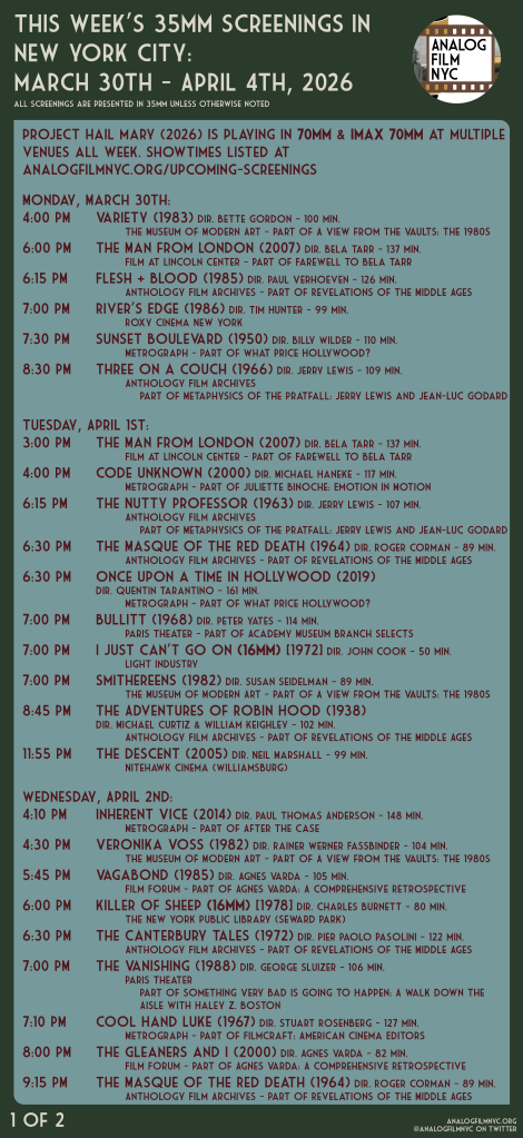Upcoming celluloid film screenings in New York City