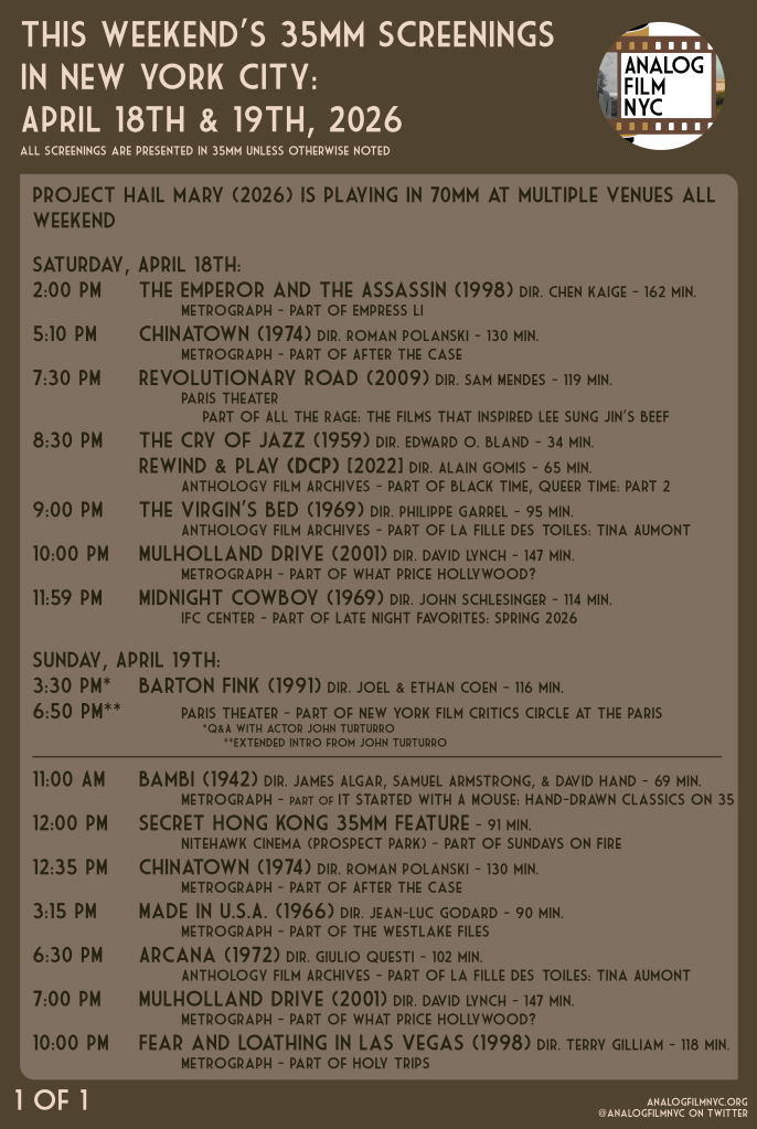 Upcoming celluloid film screenings in New York City